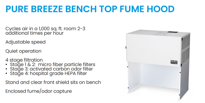 Transform your Pure Breeze HEPA fume hood into a bench-top workstation with the Vaniman Stand & Shield kit. This accessory includes a sturdy frame and a plexiglass protective shield, allowing for safer, hands-on work within a controlled fume extraction environment. Stand only, Pure Breeze Sold Separately - 45-100-500.