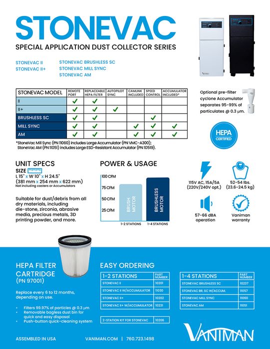 Vaniman StoneVac MillSync CAD/CAM Dust Collector