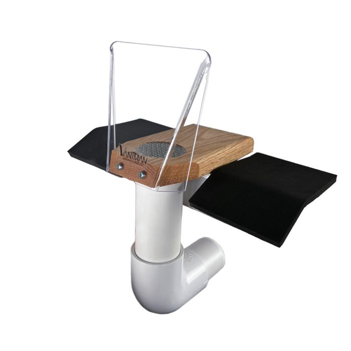 The Vaniman Jet-Port is an easy way to provide a convenient, effective dust collecting station at an existing table or workbench. Three options for attachments to the workbench are included for your convenience depending on the configuration of your work area. The oak work block is a convenient place to hold your work while grinding or polishing. The shield is strategically placed between you and your work to collect the dust produced without hampering your view or movement. Use of the Jet-Port will improve health and safety in your lab.