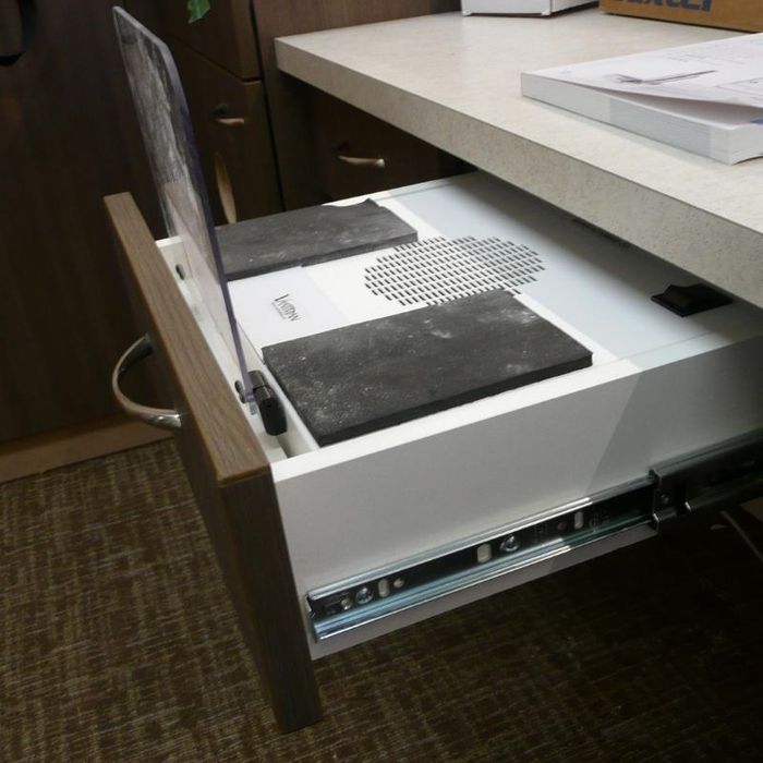 The Downdraft Drawer is a dust collection insert that fits inside most standard drawers. Tubing connects to your vacuum source in the rear and it features a adjustable protective shield, catch tray, and telescoping hose connections allowing you to open and close your drawer with ease when needed.